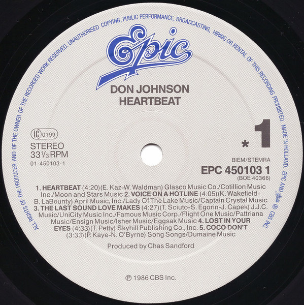 Don Johnson – Heartbeat (LP, Album, Gat)