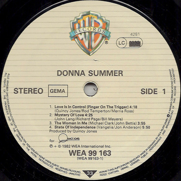 A1. Love Is In Control (Finger On The Trigger) 4:18