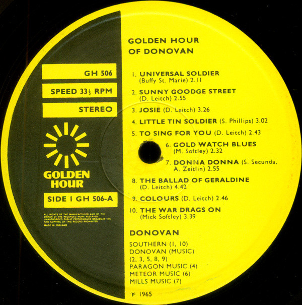 Donovan – Golden Hour Of Donovan (LP, Comp)