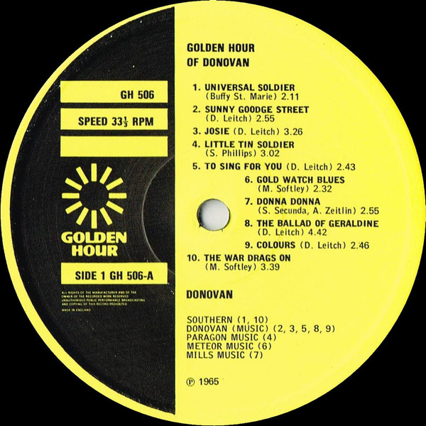 Donovan – Golden Hour Of Donovan (LP, Comp, Tra)