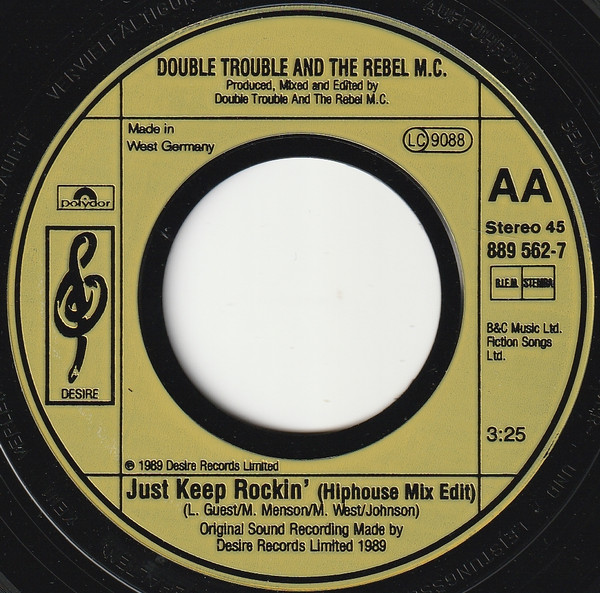 Double Trouble, Rebel MC – Just Keep Rockin’ (7″, Single, Yel)