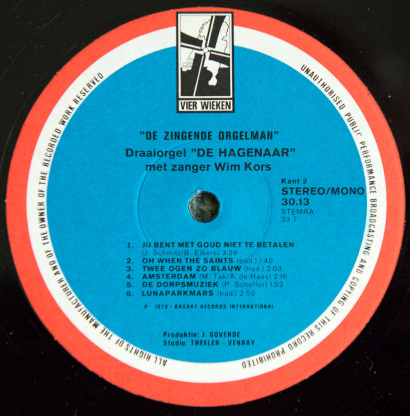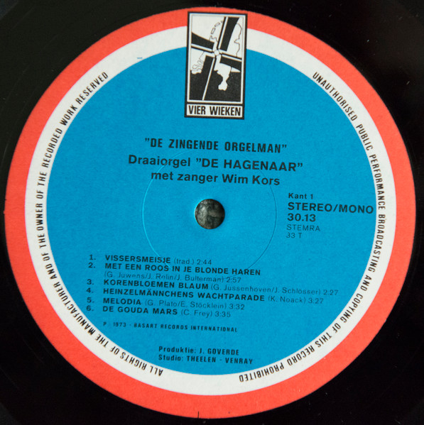 Draaiorgel De Hagenaar Met Zanger Wim Kors – De Zingende Orgelman (LP, Album)