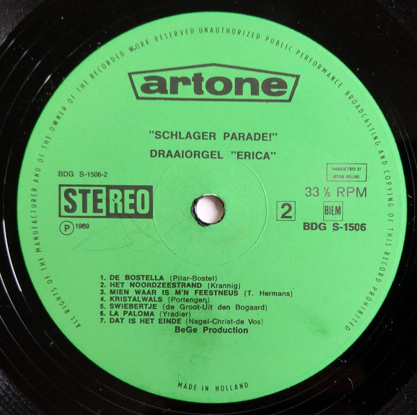 Draaiorgel “Erica” – “Schlager Parade!” (LP)