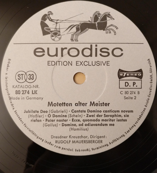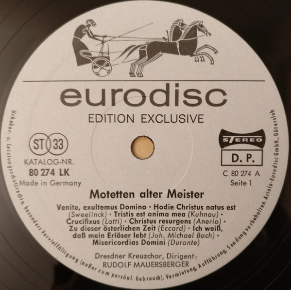 Dresdner Kreuzchor, Rudolf Mauersberger – Motetten Alter Meister (LP)