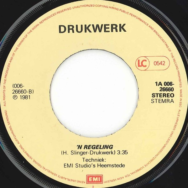 Drukwerk – Je Loog Tegen Mij / ‘n Regeling (7″, Single)