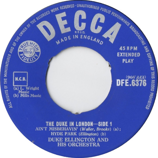 Duke Ellington And His Orchestra – The Duke In London (7″, EP)