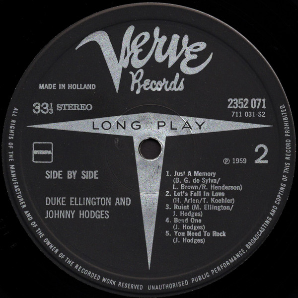 Duke Ellington And Johnny Hodges – Side By Side (LP, Album, RE)