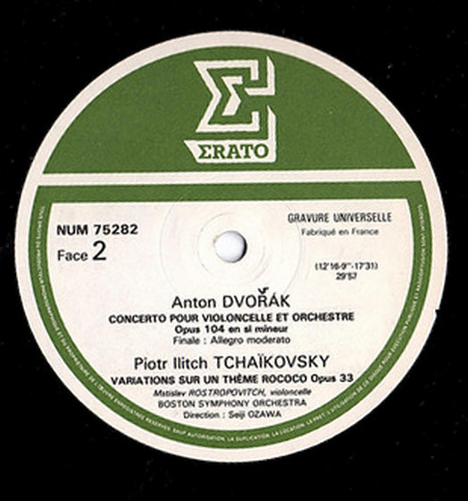 Dvořák* / Tchaïkovsky* – Mstislav Rostropovitch*, Boston Symphony Orchestra, Seiji Ozawa – Concerto Pour Violoncelle / Variations Rococo (LP)