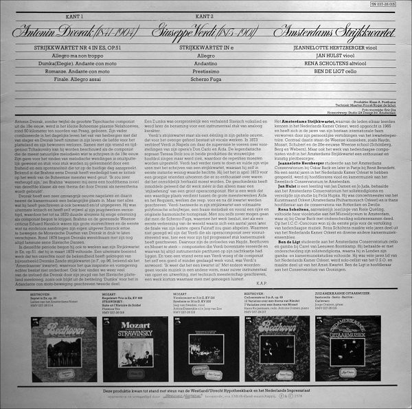 Dvorak* / Verdi* – Amsterdams Strijkkwartet – Dvorak: Strijkkwartet In Es, Op. 51 • Verdi: Strijkkwartet In e (LP, Album)