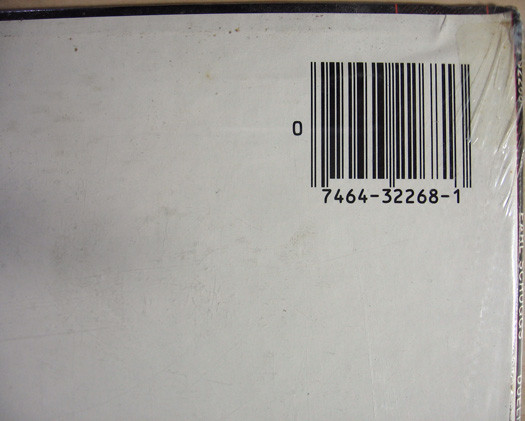 TWO SMALL STICKERS ON BACKSIDE COVER, SHADOW OF A REMOVED STICKER ON BACKSIDE COVE