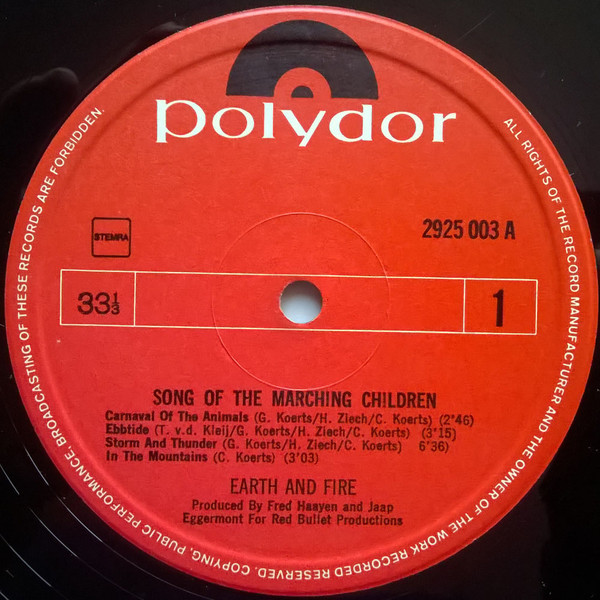 Earth And Fire – Song Of The Marching Children (LP, Album, RP, Gat)