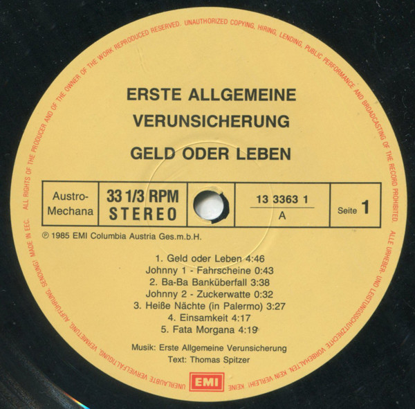 EAV (Erste Allgemeine Verunsicherung) – Geld Oder Leben! (LP, Album, RP)