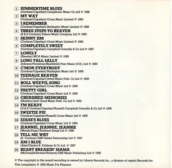 Eddie Cochran – 20 Great Tracks (CD, Comp, Mono)