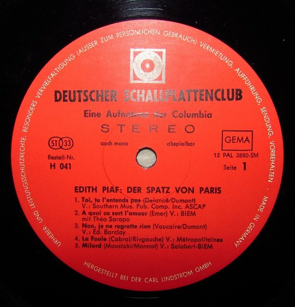 Edith Piaf – Der Spatz Von Paris (LP, Album, Comp, Mono)