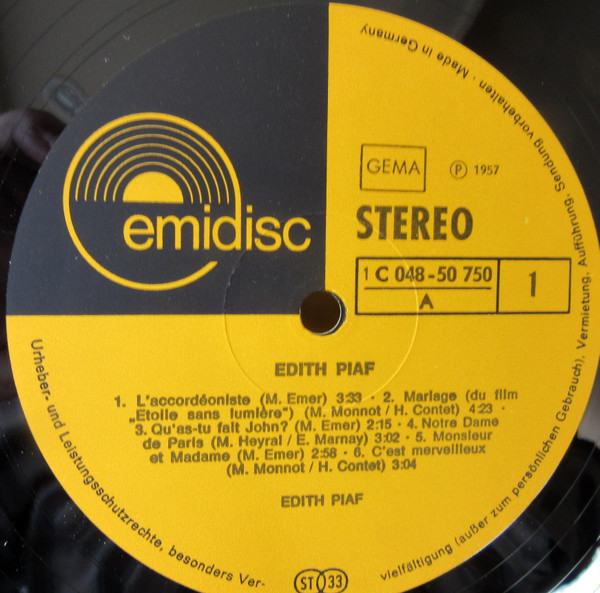 Edith Piaf – Edith Piaf (LP, Comp)