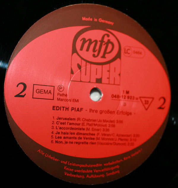 Edith Piaf – Ihre Grossen Erfolge (LP, Comp, Mono)
