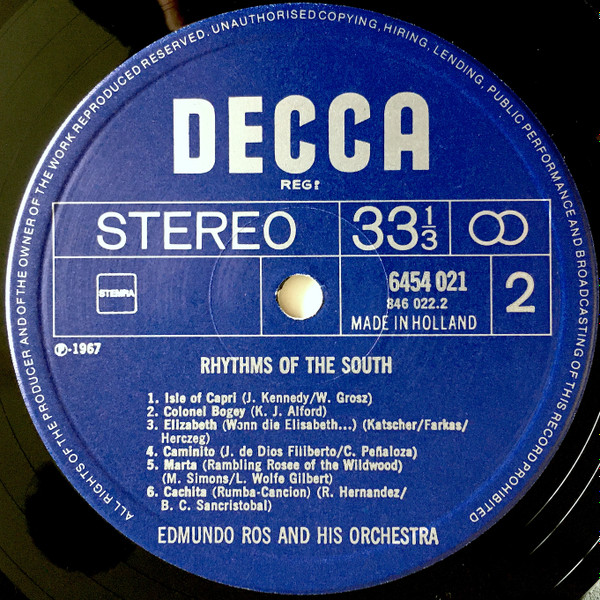 Edmundo Ros & His Orchestra – Rhythms Of The South (LP, Album, RE)