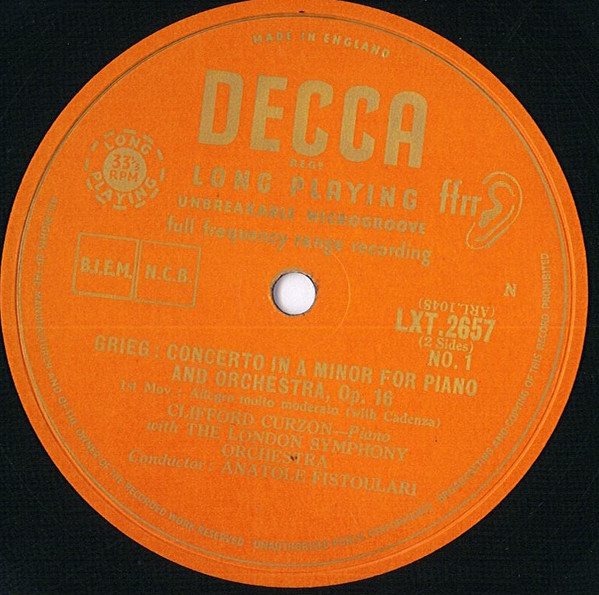 Edvard Grieg – Clifford Curzon (Piano) With London Symphony Orchestra Conducted By Anatole Fistoulari – Concerto In A Minor For Piano And Orchestra Opus 16 (LP, Mono)