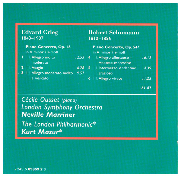 Edvard Grieg – Robert Schumann – Cécile Ousset, London Symphony Orchestra, Sir Neville Marriner – Piano Concerto (CD, Comp)