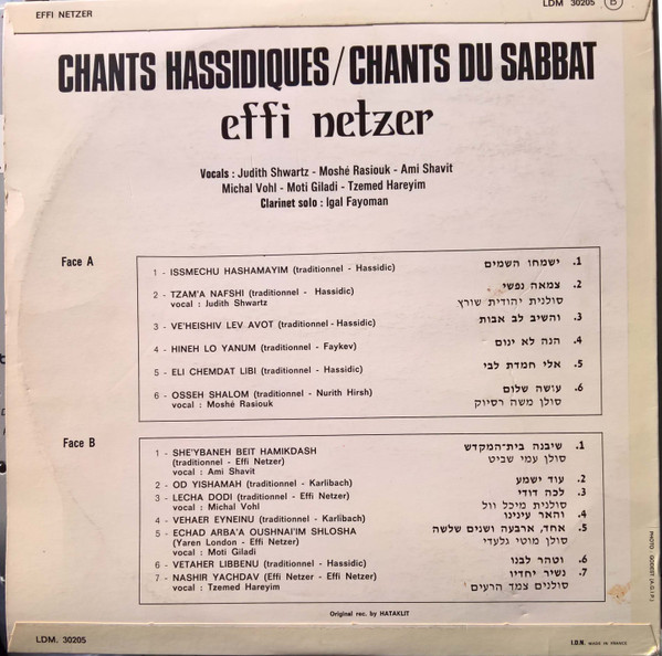 Effi Netzer – Chants Hassidiques / Chants Du Sabbat (LP, Album)