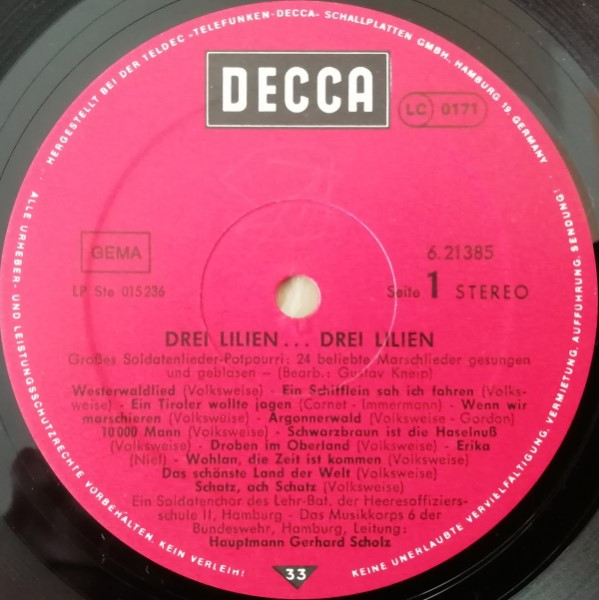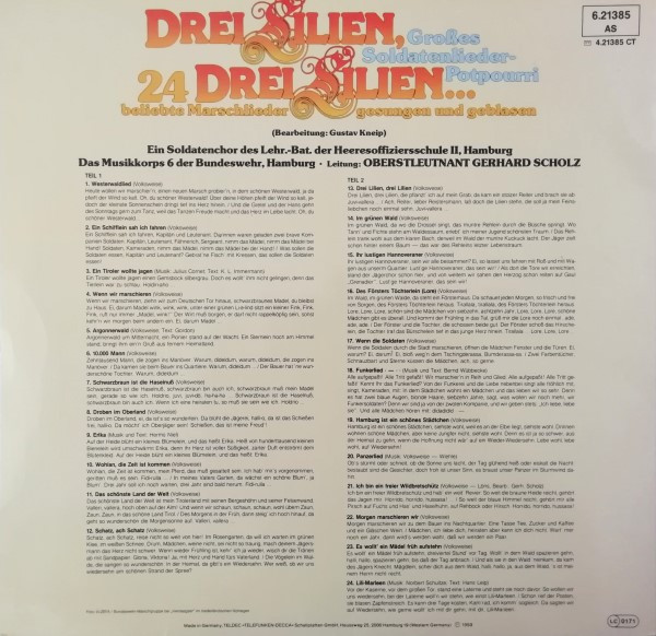 Ein Soldatenchor Des Lehr-Bataillons Der Heeresoffizierschule II, Hamburg, Heeresmusikkorps 6, Hamburg – Drei Lilien, Drei Lilien… (Großes Soldatenlieder-Potpourri) (LP, Album, RE)