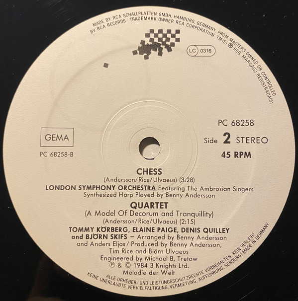 B2. Tommy Körberg, Elaine Paige, Denis Quilley, Björn Skifs – Quartet (A Model Of Decorum And Tranquility) 2:15