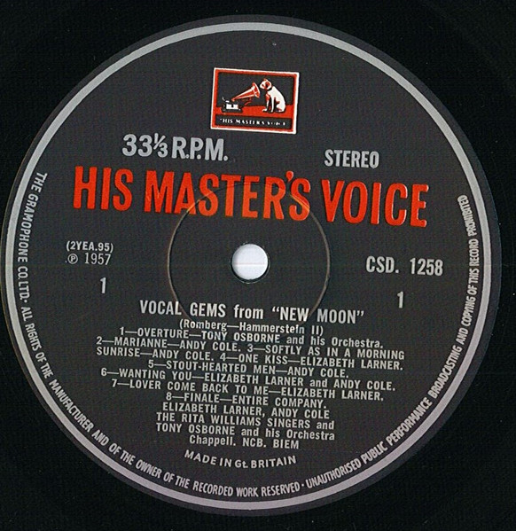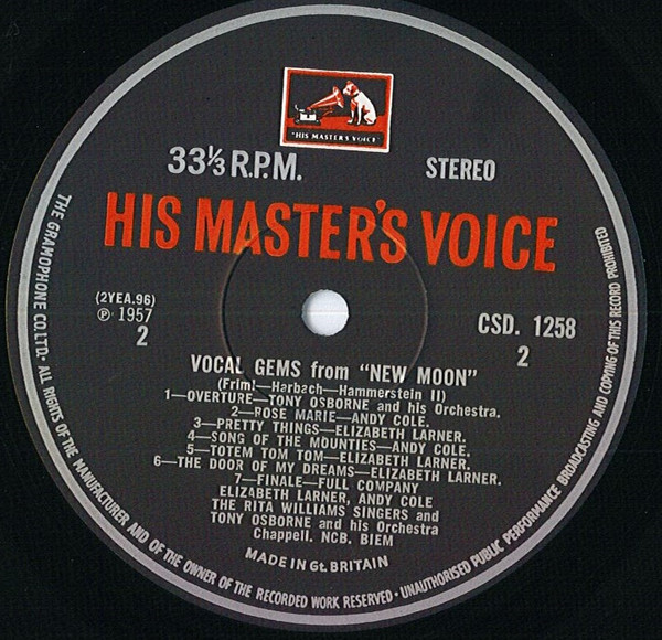 Elizabeth Larner, Andy Cole (2), The Rita Williams Singers, Tony Osborne And His Orchestra – Vocal Gems From New Moon And Rose Marie (LP, Album)