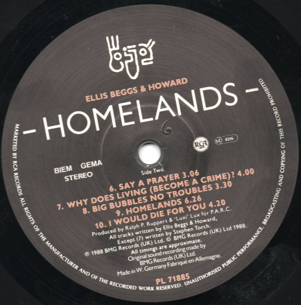 Ellis Beggs & Howard* – Homelands (LP, Album)