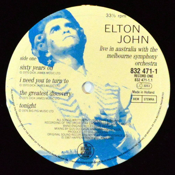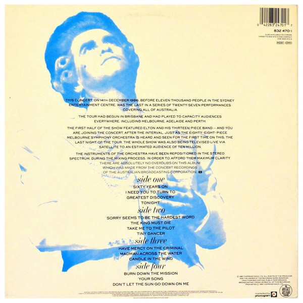 Elton John With The Melbourne Symphony Orchestra* – Live In Australia (2xLP, Album, Gat)