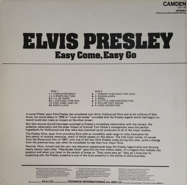 Elvis Presley – Easy Come, Easy Go (LP, Comp, RCA)