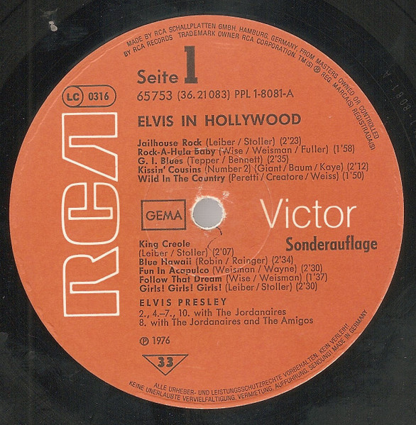 Elvis Presley – Elvis In Hollywood (LP, Comp, Club, S/Edition)
