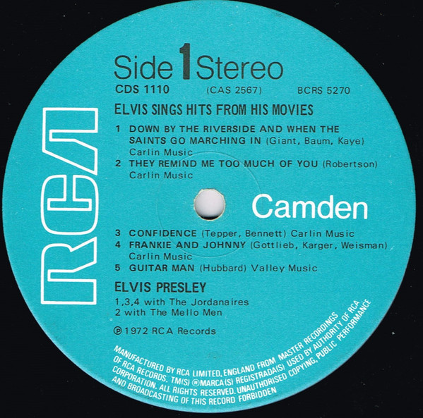 Elvis Presley – Elvis Sings Hits From His Movies (LP, Comp)