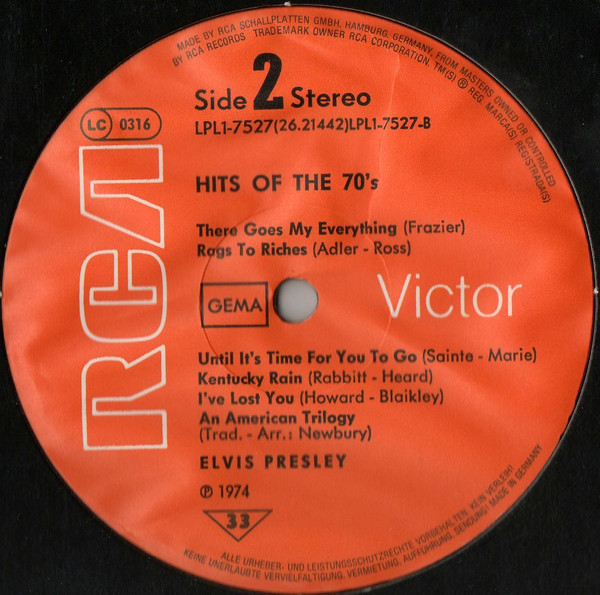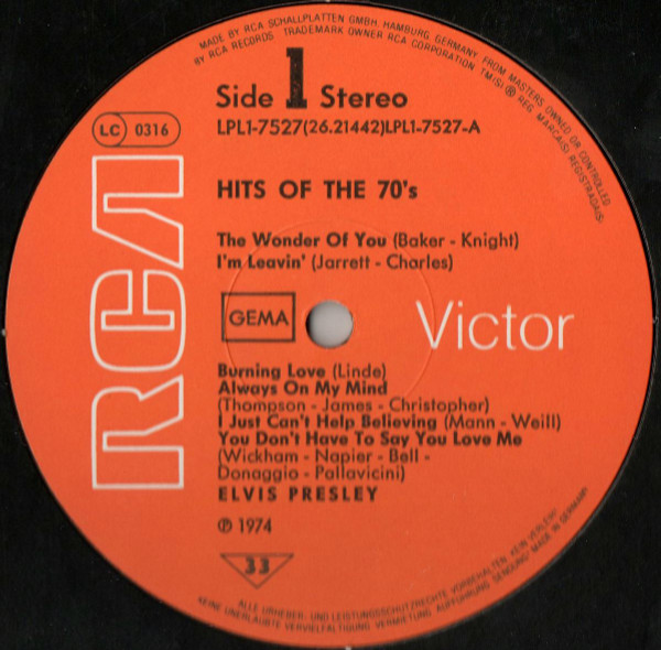 Elvis Presley – Hits Of The 70’s (LP, Comp, RE)