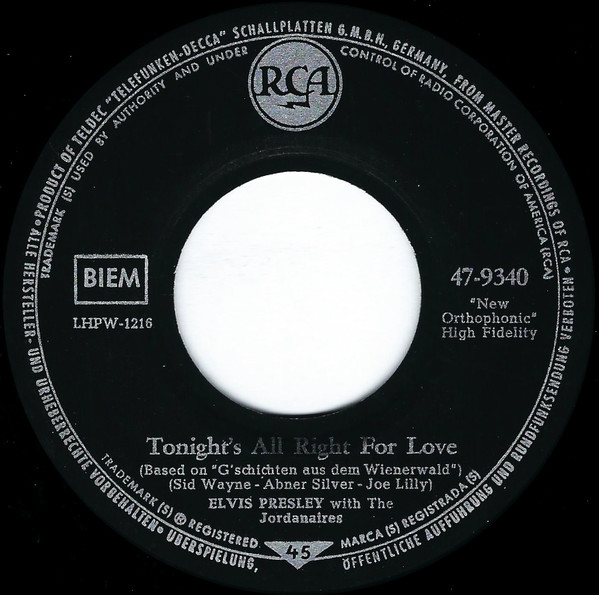 B. Elvis Presley, The Jordanaires – Tonight’s All Right For Love (Based On “G’schichten Aus Dem Wienerwald”)