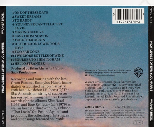 Emmylou Harris – Profile / Best Of Emmylou Harris (CD, Comp, RE)