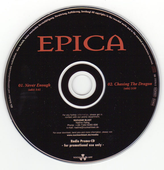 Epica (2) – Never Enough (CD, Single, Promo)