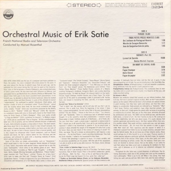 Erik Satie – French National Radio And Television Orchestra*, Manuel Rosenthal – Orchestral Music Of Erik Satie (LP, RE)
