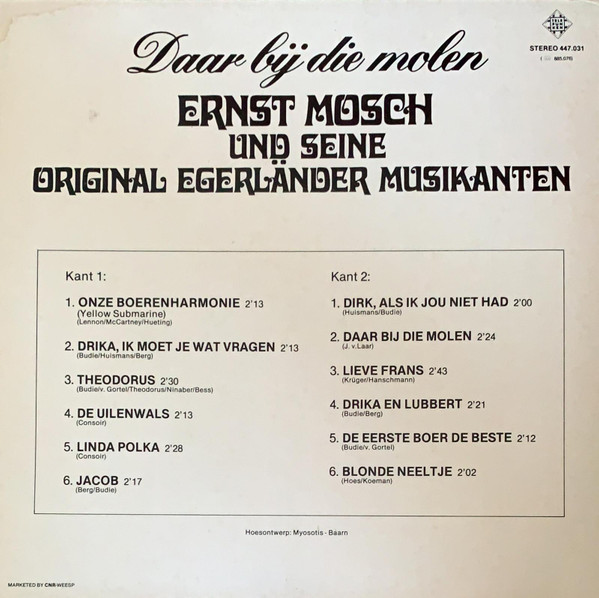 Ernst Mosch Und Seine Original Egerländer Musikanten – Daar Bij Die Molen (LP)