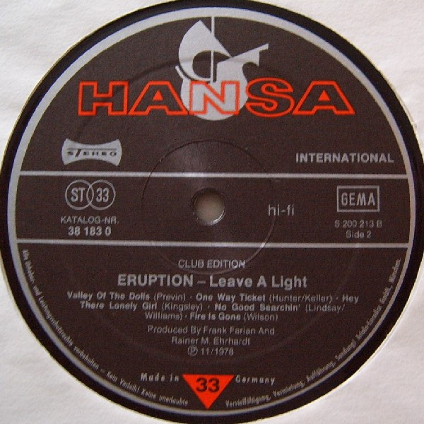 Eruption (4) – Leave A Light (LP, Album, Club)
