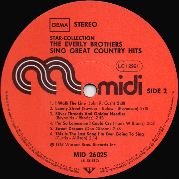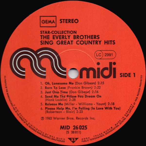 Everly Brothers – Sing Great Country Hits (LP, Album, RE)