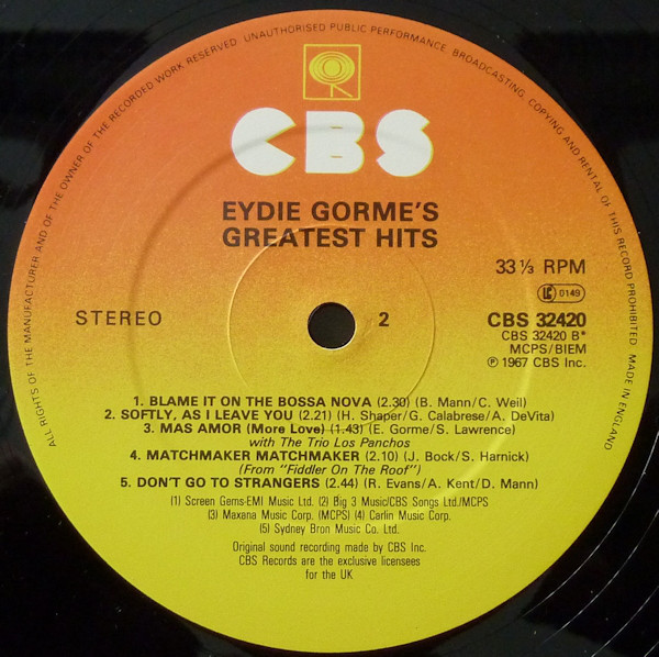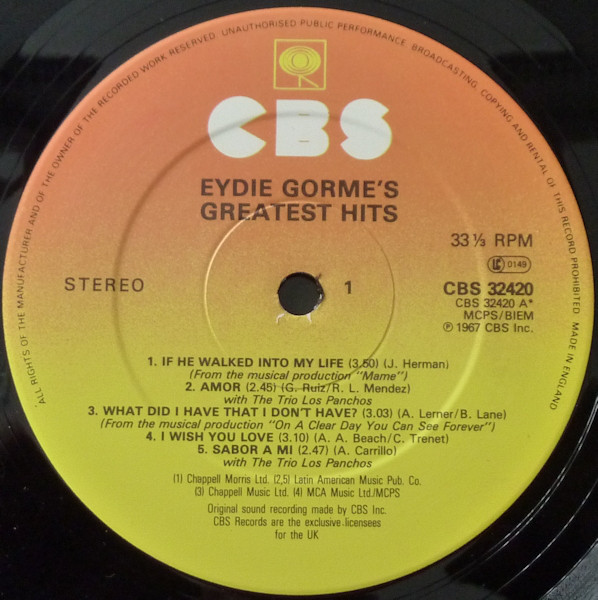 Eydie Gorme* – Eydie Gorme’s Greatest Hits (LP, Comp, RE)