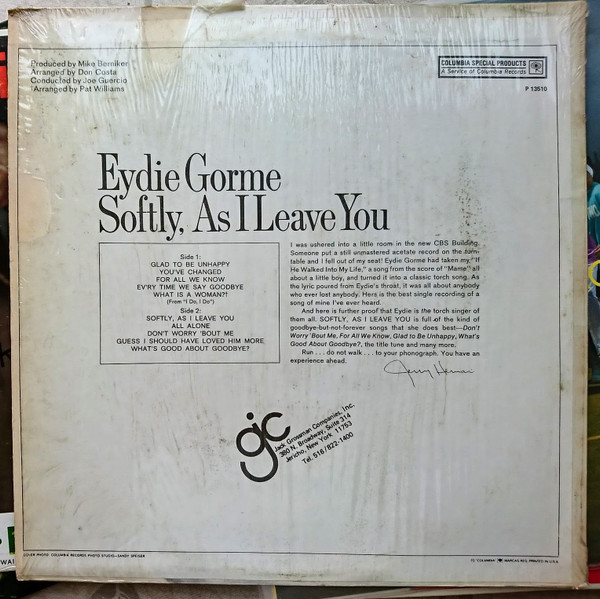 Eydie Gormé – Softly, As I Leave You (LP, Album, RE)