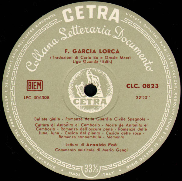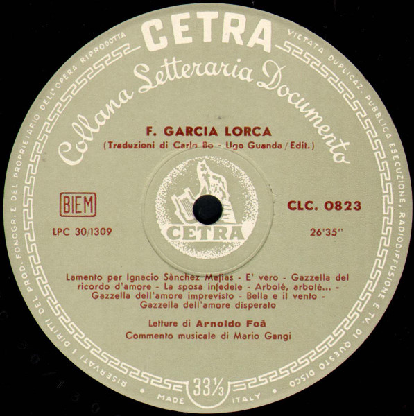 F. García Lorca* / Arnoldo Foà – Federico García Lorca (LP, Album)