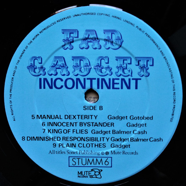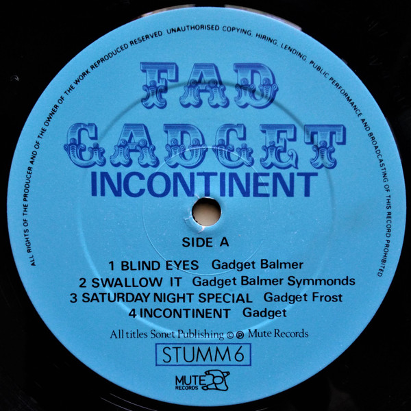 Fad Gadget – Incontinent (LP, Album, Tap)