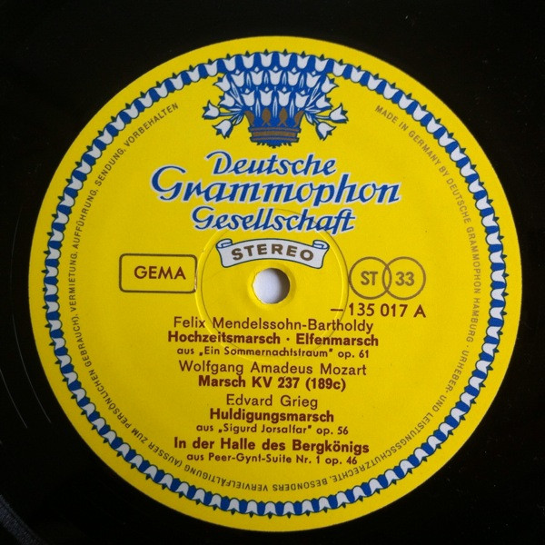 Felix Mendelssohn-Bartholdy, Wolfgang Amadeus Mozart, Edvard Grieg, Hector Berlioz, Peter Tschaikowsky*, Serge Prokofieff*, Darius Milhaud, Johann Strauss (Vater)* – Symphonische Märsche (LP, Comp)