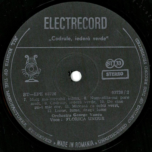 Florica Ungur – Codrule Iederă Verde (LP, Album)