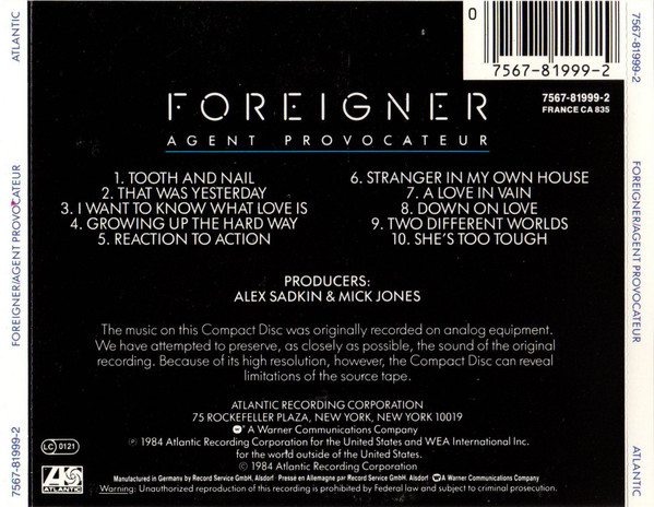 Foreigner – Agent Provocateur (CD, Album)