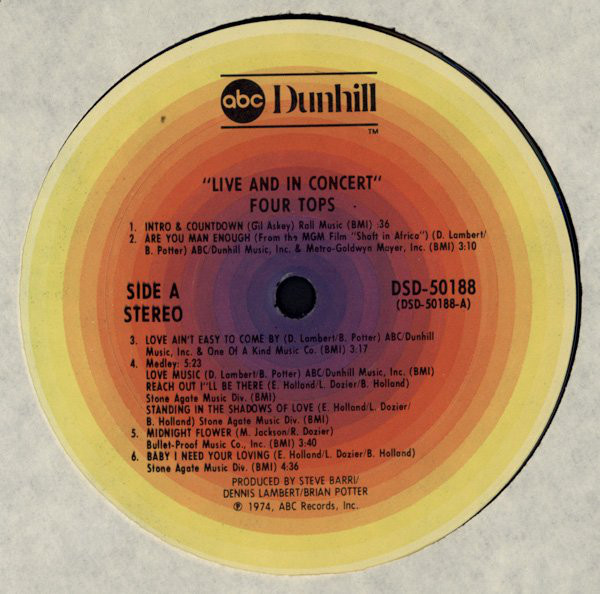 Four Tops – Live & In Concert (LP, Album, Pit)