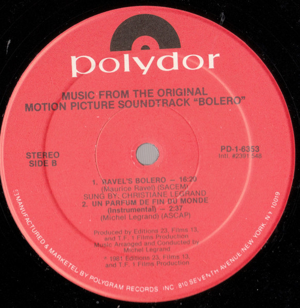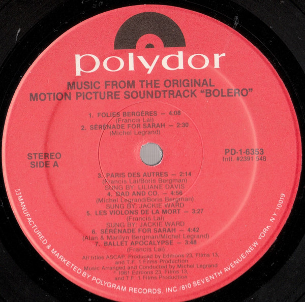 Francis Lai And Michel Legrand – Bolero (Original Motion Picture Soundtrack) (LP, Album)
