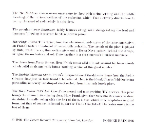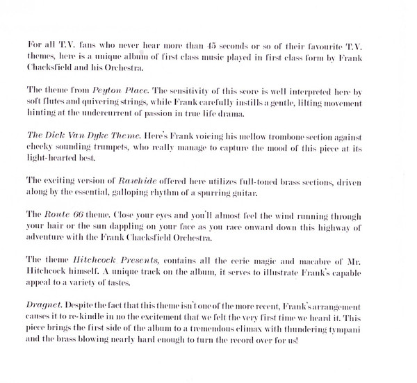 Frank Chacksfield & His Orchestra – All Time Top T.V. Themes (CD, RE)